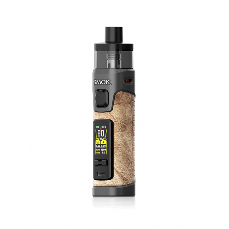 Zestaw SMOK RPM 5 PRO w kolorze grafitowym z ozdobnym obiciem w postaci brązowej skóry. Specyfikacja: