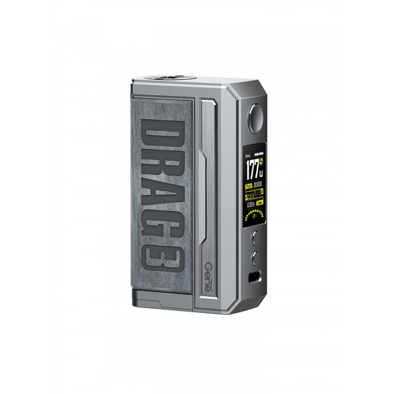 MOD Drag 3 marki Voopoo w kolorze srebrnym ze skórzanym wykończeniem. Najważniejsze cechy: