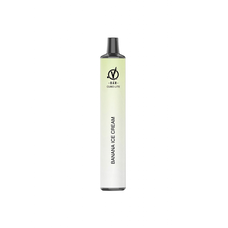 Jednorazowy e-papieros marki Vbar, wypełniony liquidem w postaci soli nikotynowej o smaku lodów bananowych. Moc: 20mg/ml. Ilość zaciągnięć: 600.