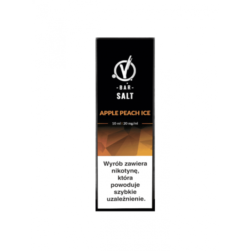 Sól nikotynowa w postaci liquidu VBar Salt o smaku jabłka z brzoskwinią z dodatkiem koolady. Moc: 20mg/ml. W cenę produktu jest wliczony podatek akcyzowy.